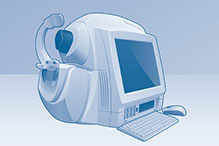 A computer that measures the pressure inside of the eye to help determine one of the risks for developing glaucoma. If the ocular pressure is too high, an additional diagnostic test may be used.